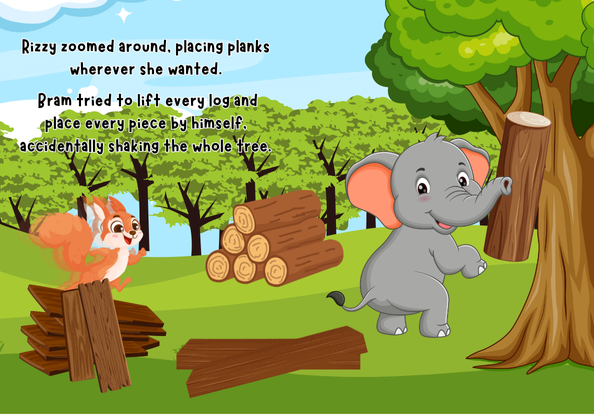 Rizzy the squirrel is bursting with excitement when she convinces her three forest friends to build the coolest treehouse ever. Bram the elephant is strong and ready to help, Nina the rabbit has a detailed plan, and Tomo the turtle is calm and steady—but as they start building, things go completely wrong. Boards fall, tempers rise, and their dream treehouse begins to crumble.